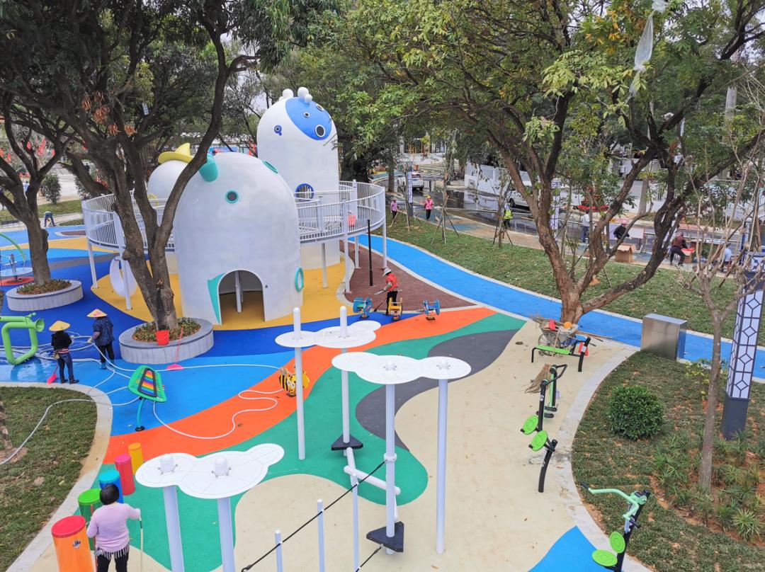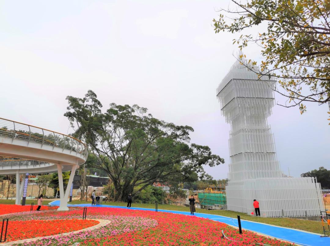 去年7月30日,开平市城管局园林处全面启动金山公园南门景观提升改造工程。工程总投资约1800万元,总占地面积约18000平方米,设有亲水广场、儿童游乐场、空中观景栈道、标志性构筑物、花海及停车场等设施。
