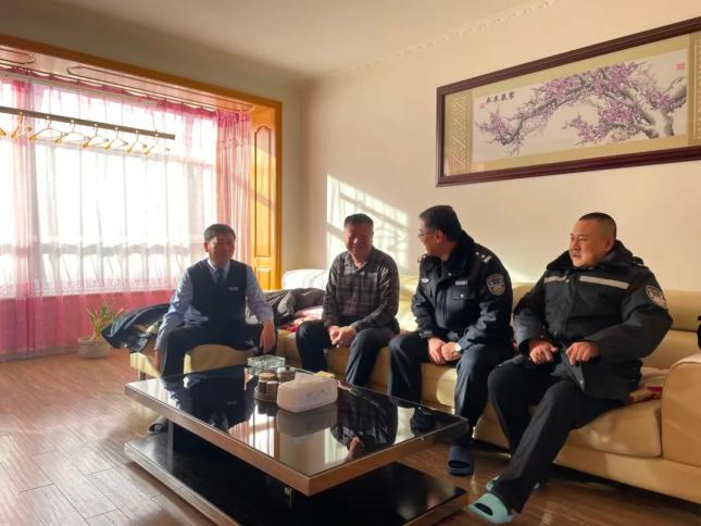 在退休老干部家里,领导们询问了老干部身体情况与生活近况,为他们介绍这些年来霍林郭勒市公安局的新变化、新气象,并送去新春祝福。