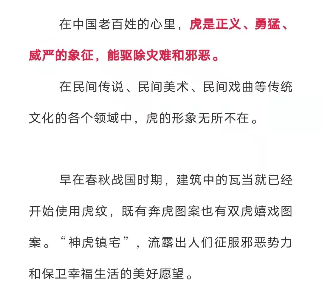 在中国文化中,虎象征着武勇威猛、驱凶避邪、吉祥如意。