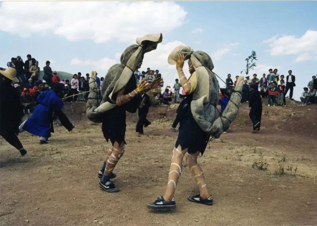 彝族老虎笙,既是祭祀性舞蹈,又是自娱性很强的舞蹈,是彝族虎图腾的“活史料”,主要流传在楚雄彝族自治州双柏县法裱镇。