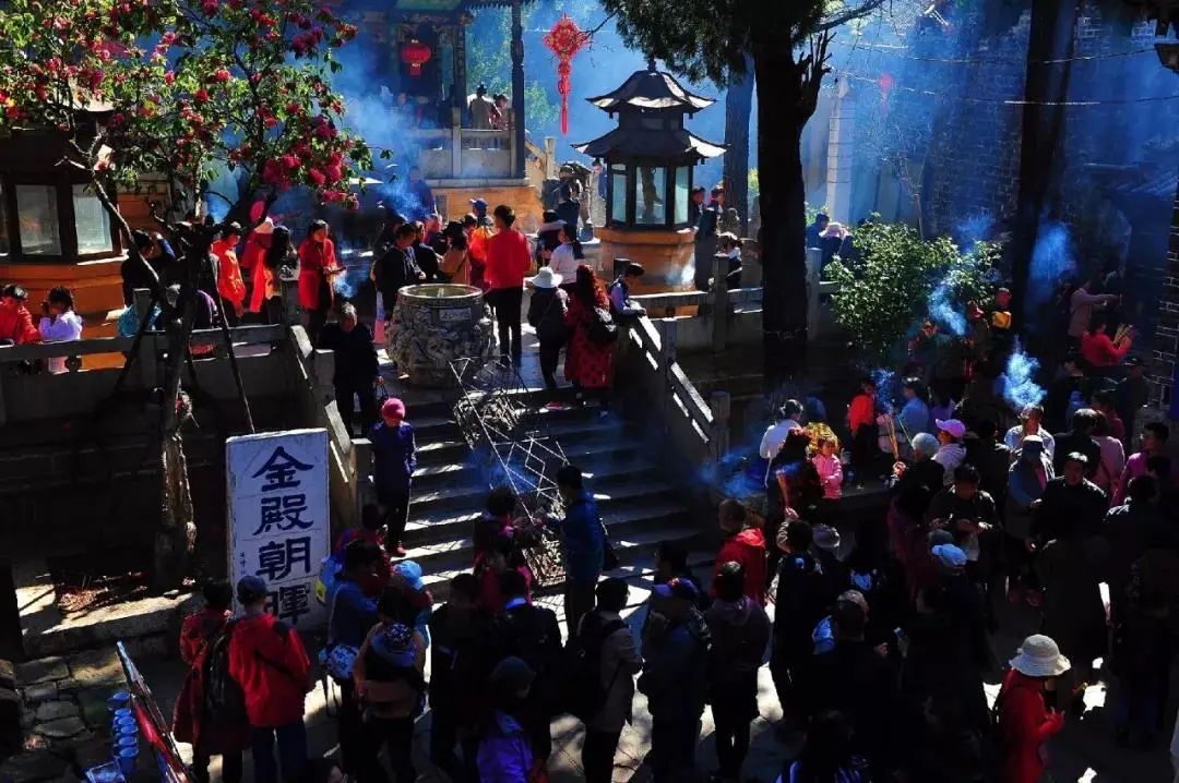 作为云南省级非物质文化遗产项目,金殿庙会是一种古老的昆明民俗及民间宗教文化活动。老昆明人赶庙会,祈福安康,踏青赏花,跳花灯、唱山歌、舞龙灯,品尝昆明各种名特风味食品,选购喜爱的小手工艺品。