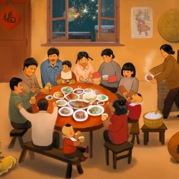 丰盛美味的年夜饭是大家一年生活的期盼,全家人齐聚一堂,品尝爱意浓烈的美食美酒,在推杯换盏中交谈一年的收获成长,寄托新年的希望。