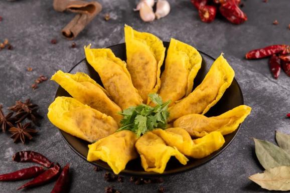 小编家都是用锅勺做的,先用肥肉擦一下勺子,这样就不会烧糊粘上了,然后倒上鸡蛋液,中间塞满肉馅,折叠做成饺子的形状。蛋饺色泽澄黄,是富贵的象征。吃了蛋饺就意味着来年交好运气!