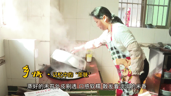使用农村的柴火灶台,包好的禾苔隔水蒸大约10到15分钟就可以出炉,蒸好的禾苔外皮剔透、口感软糯,散发着淡淡的米香。