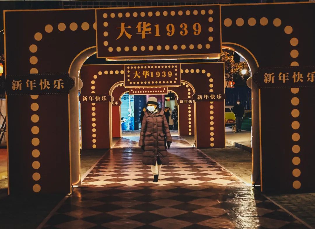 春节期间,大华1939文创园里设置了灯笼打卡拍照墙、农特产品卖场、中街复古门型走廊及大华老照片展示区、后街5处怀旧打卡点。