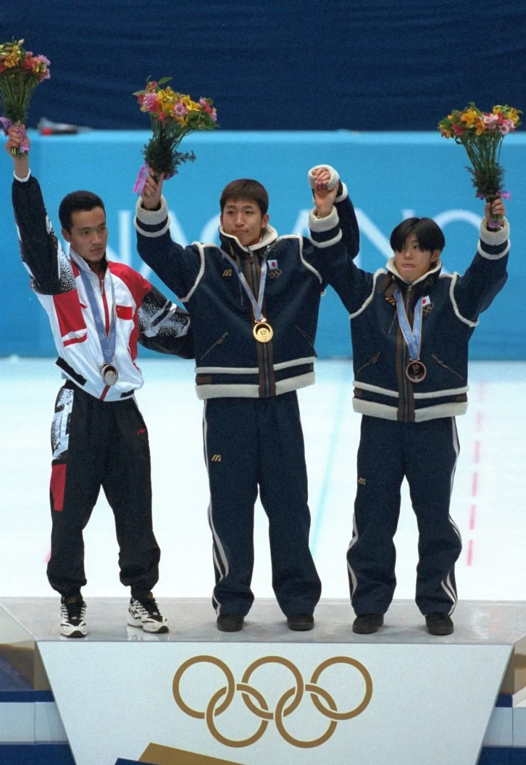 1998年2月21日,日本1998长野冬奥会,短道速滑男子500米,安玉龙(左一)获得银牌。图片来源:视觉中国