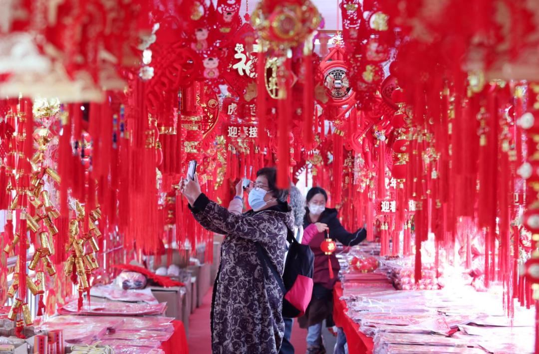春城市民在年货市场选购新春饰品,喜迎新春佳节。杨峥 摄