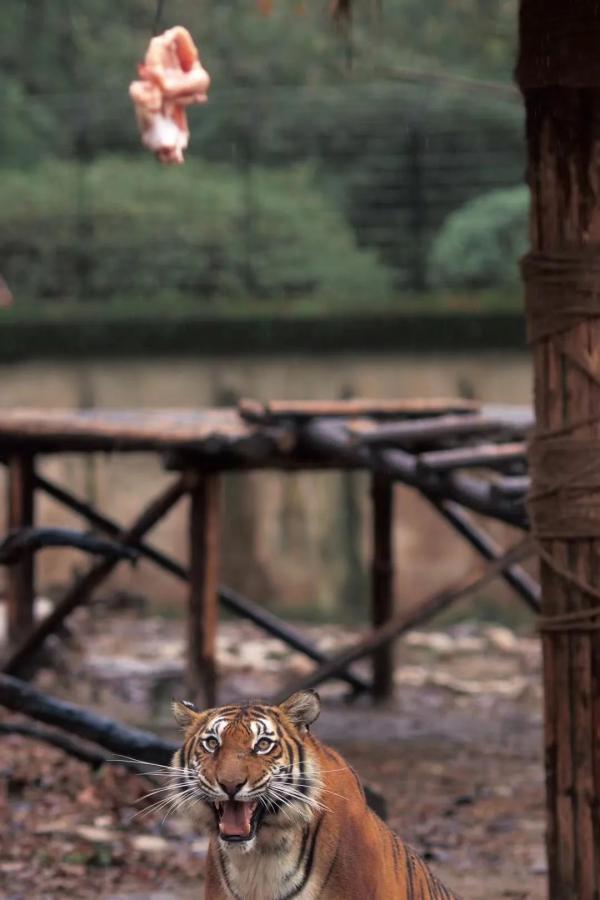 在动物园,饲养员会增加老虎取食的难度,通过丰容、训练增强其捕食能力。此外,上海动物园会每周五让老虎们“绝食”,适当增加饥饿感,维持野性。