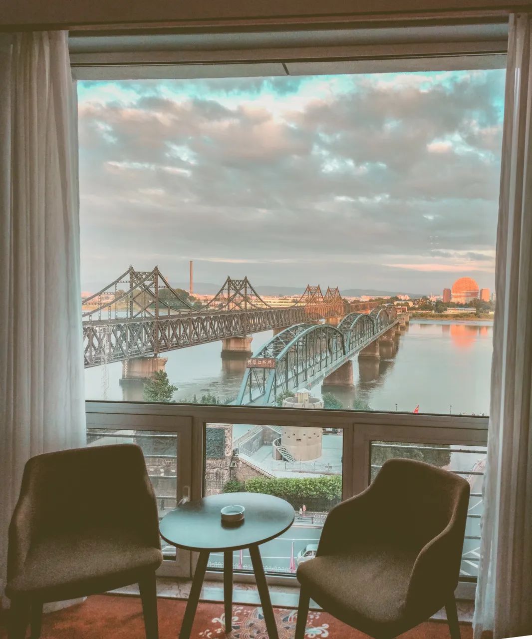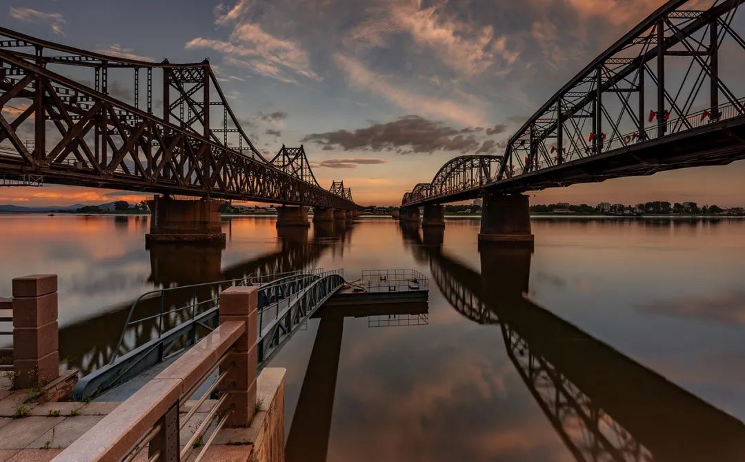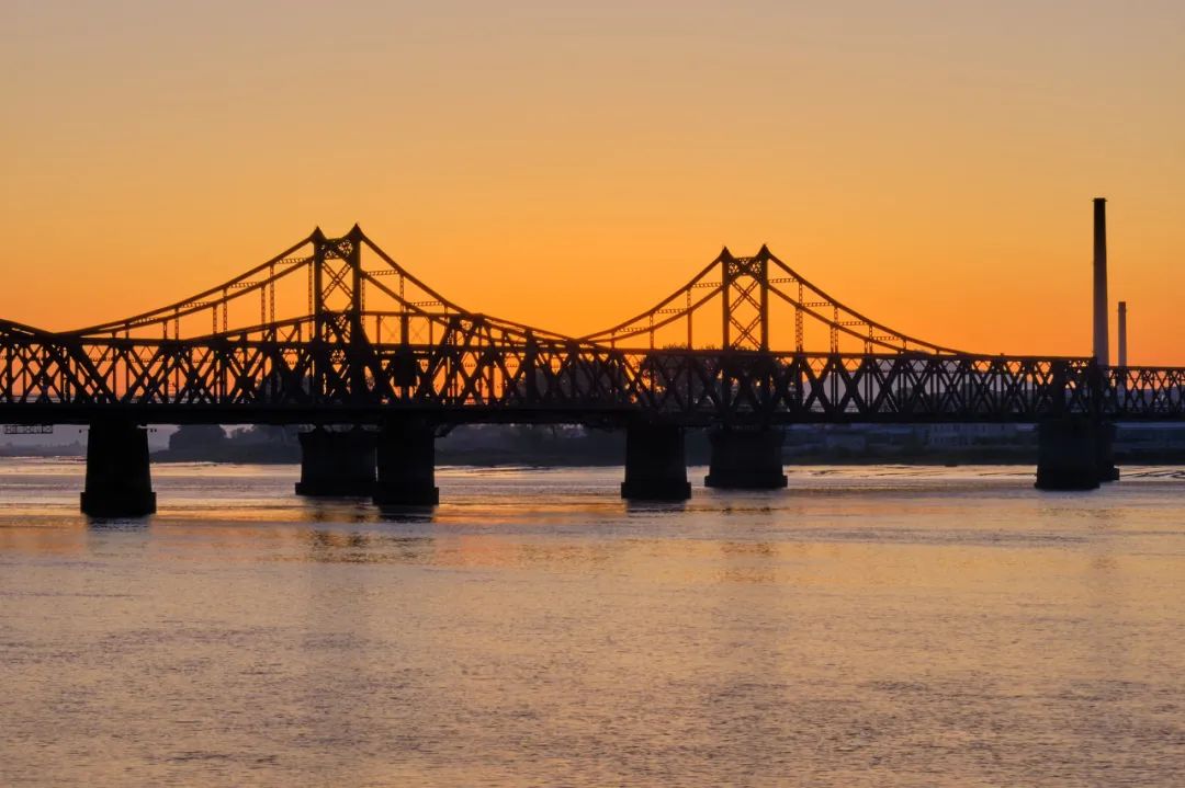 连接两岸的友谊铁桥长度不到1公里,而且这里还有个叫“一步跨”的景点,与朝鲜新义州的最近距离,不到两米。