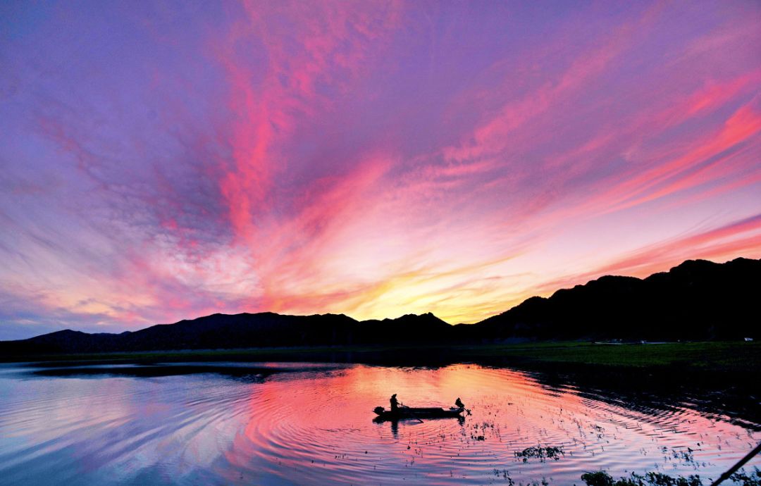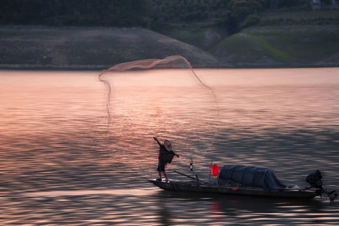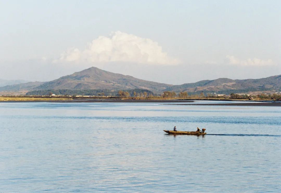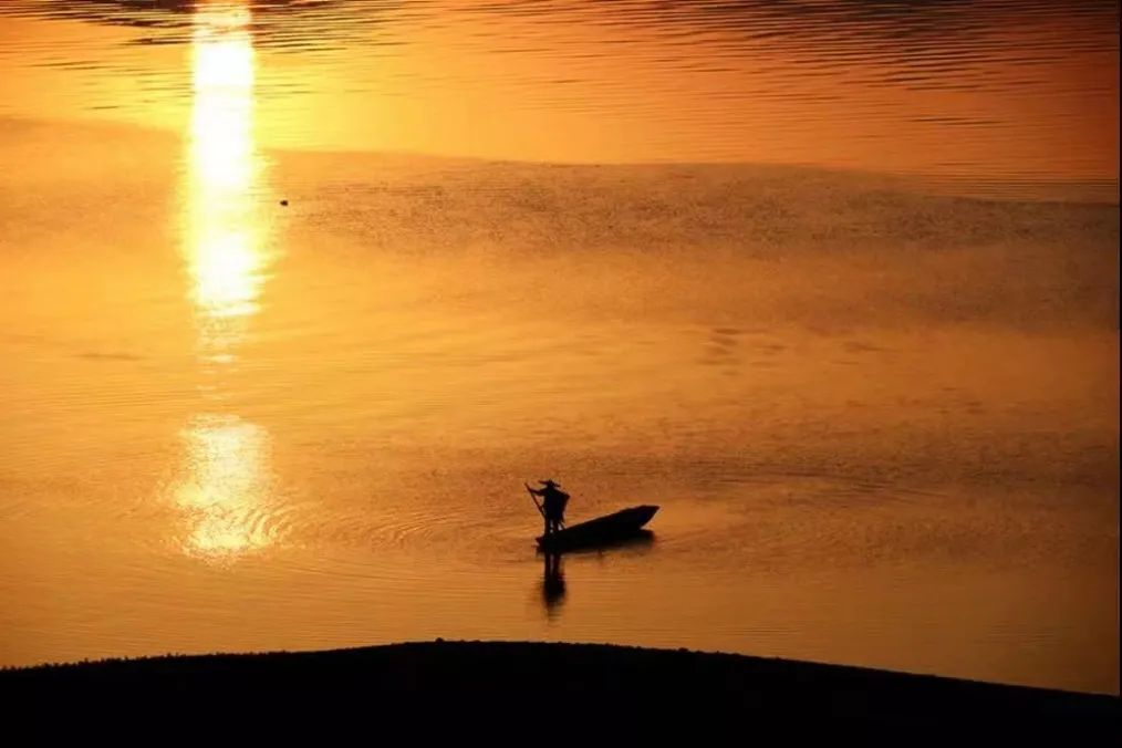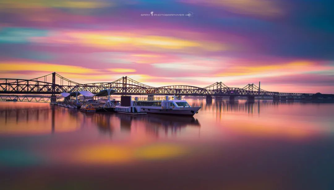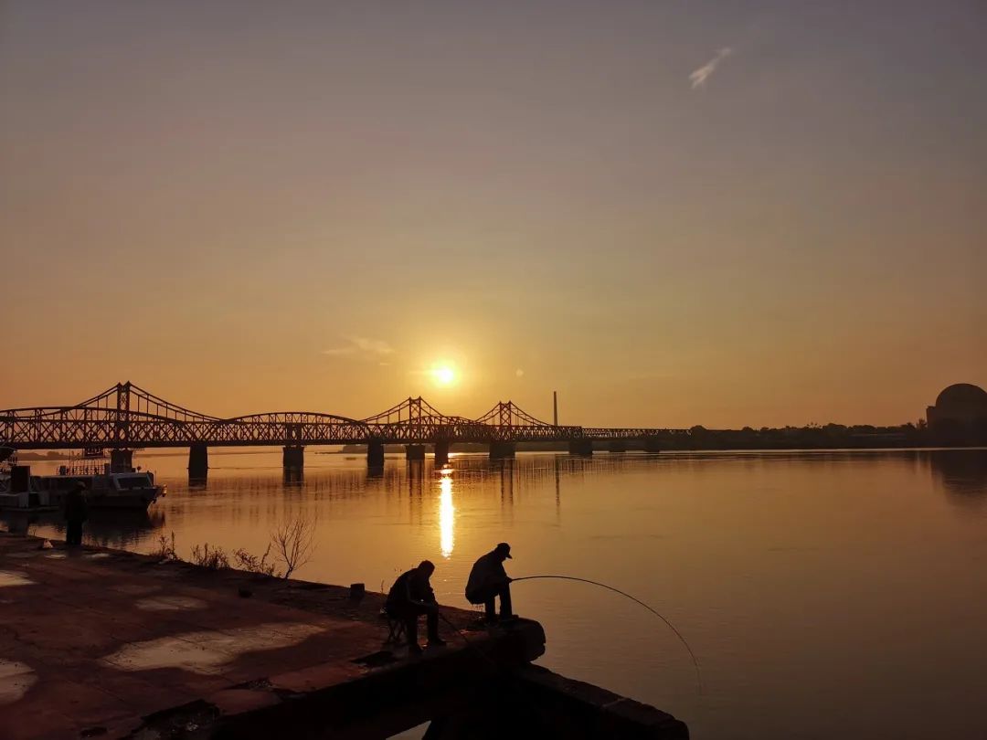 傍晚时分,太阳逐渐落下,鸭绿江的江面被落日的余晖染成绯红。渔夫们或撑船撒网捕鱼,或是依船闲坐,抽一袋水烟,伴着夕阳给这一天的工作画上完满的句号。