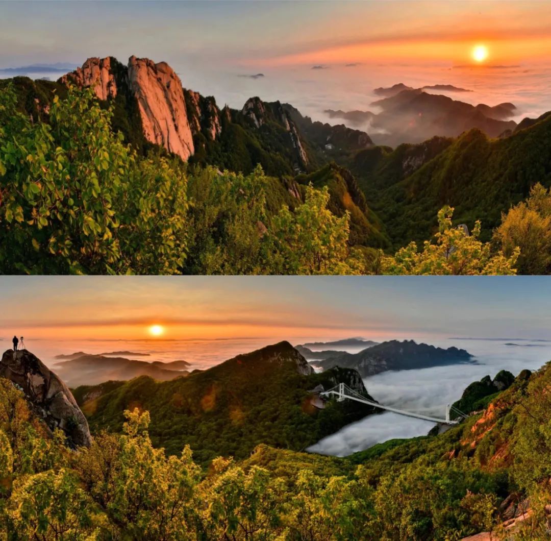 其中“顶歧烟峦”是丹东最早的八景之一,每到春天,绵延数十里的五龙山会笼罩在雾海之中,云绕峰峦,整个景区犹如在天界中。