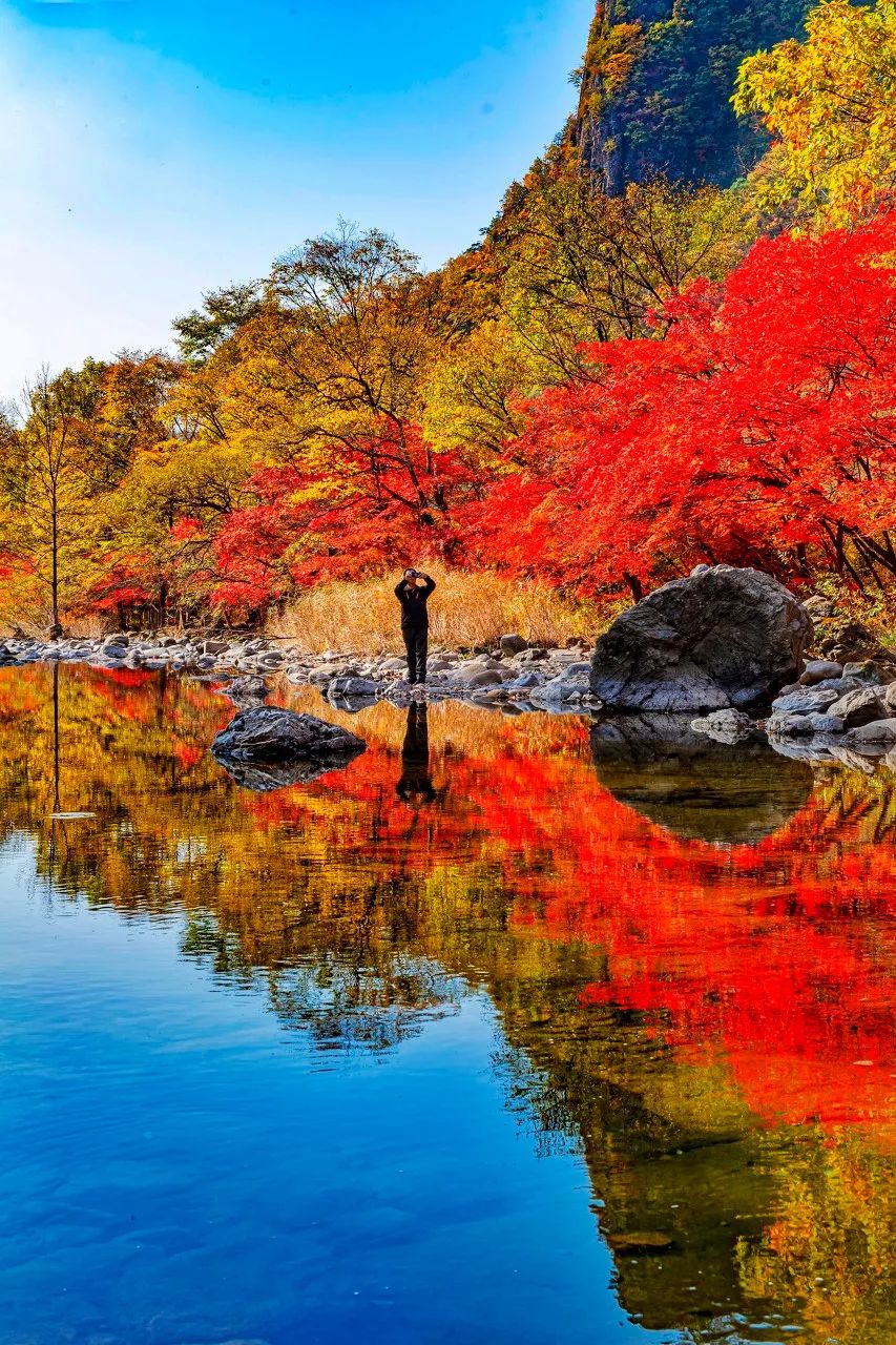 到了金秋季节,宽甸北部的青山沟是不能错过的赏枫胜地。都说“西有九寨沟,东有青山沟”,这里藏着“辽东第一大瀑布”青山飞瀑。