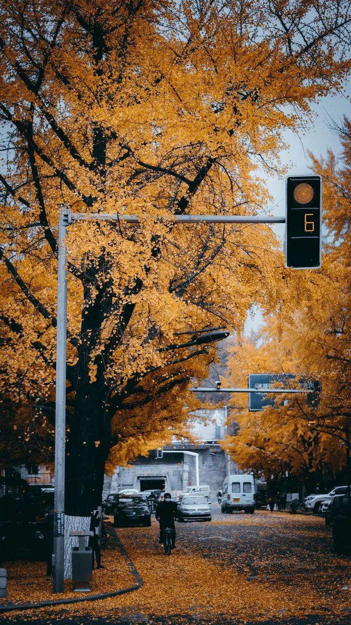 每逢深秋,无数旅人便会前来一睹风采,走在树下,那片金黄烂漫惹人沉醉。