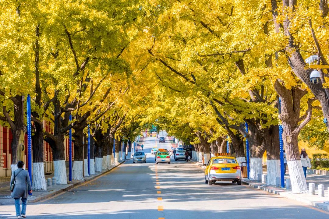 丹东,这个“银杏之城”,拥有近40条银杏大道,一到深秋,这里便是“满城尽带黄金甲”的景象。