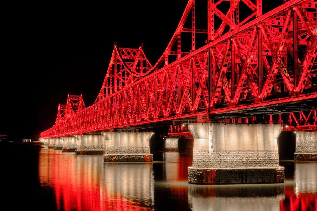 而相隔不远的新鸭绿江大桥,则是一片欣欣向荣的样貌,这两座桥的对比,就好比过去的丹东和如今的丹东,铭记历史的同时,这里也翻开了崭新的一页。
