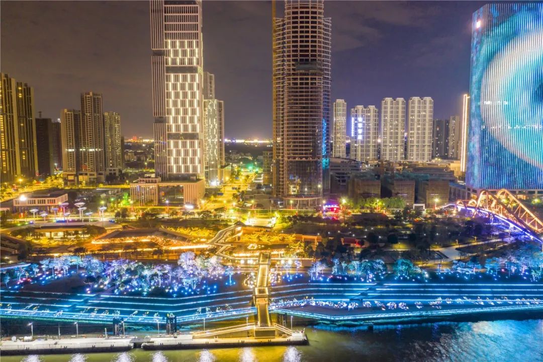 新春佳节,佛山新城流光溢彩的灯光,点缀了整个城市。