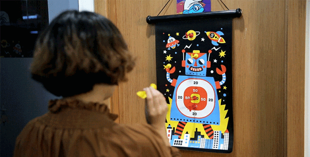 如掷飞镖、投篮球、家庭版“保龄球”(用纸杯或塑料瓶做球瓶,摆6~10个,设置一个起始线,用玩具球当“保龄球”,看看谁碰倒的纸杯多)等。