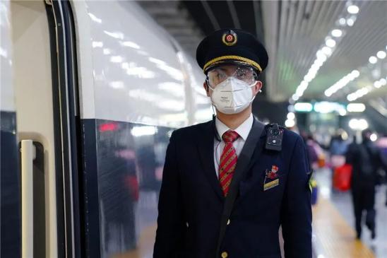 襄阳客运段高铁列车长李力值乘G1769次列车到达襄阳东站后正在立岗作业。这是李力在岗位上的第9个春运。赵静摄