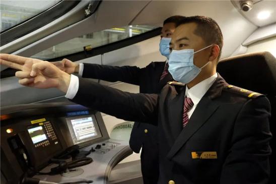 襄阳机务段李旺正在手比眼看、精心操纵列车,确保列车运行安全。这是李旺连续在岗位上的第10个春运。王峥睿摄