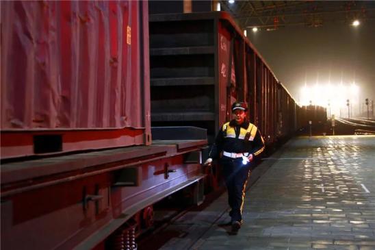 襄阳北车站连结员尚志剑正在进行列车编组作业,确保货运物资的运输。这是尚志剑连续在岗位上的第32个春节。曹黎波摄
