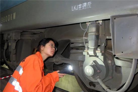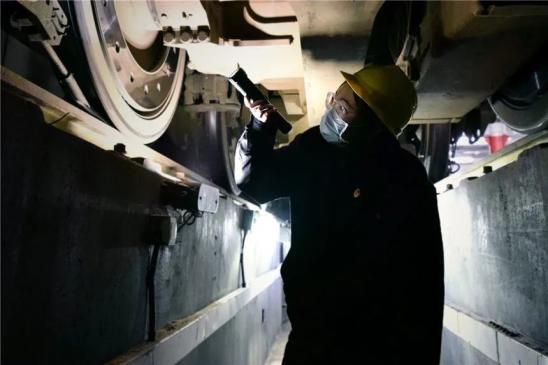 江岸机务段检修工朱子怡正在对刚进库的机车走行部进行检查,确保机车上线安全。这是朱子怡连续在岗位上的第3个春节。周钢摄