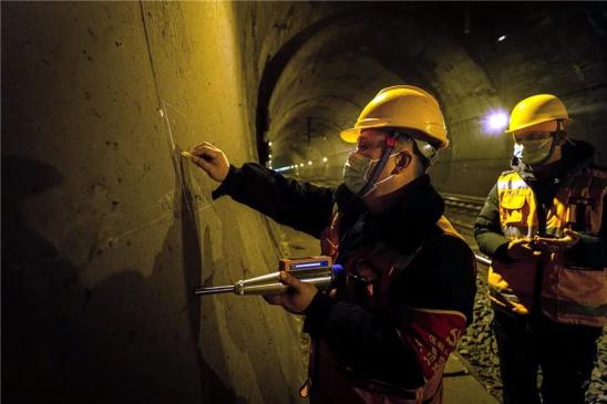 信阳工务段信阳桥隧车间检查工区工长贺超正在对京广线K1016+978处鸡公山隧道进行重点检查,确保春运期间旅客列车线路安全。这是贺超连续在岗位上的第26个春节。于海龙摄