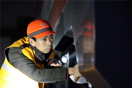 江岸机务段江岸整备车间整备工李嘉琪正在检查机车,确保机车质量良好,这是李嘉琪在岗位上的第2个春节。周钢摄