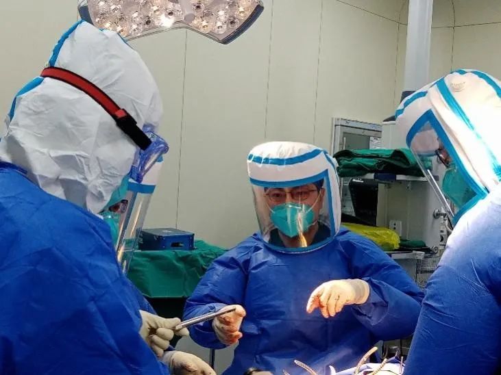 术前,吕扬用流利的外语和患者进行了充分沟通。1月26日早8时,手术室内医护人员已经做好了术前准备。吕扬穿着厚重的正压防护服,开始了第一台手术。