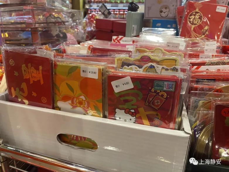 在久光百货,记者看到商超内专设了红包货架,上面摆放着各式各样的红包袋,印有“虎虎生威”“虎气冲天”等祝福语。