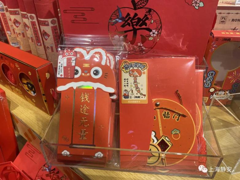 在静安晶品购物中心B1层的一家文创店,同样上新了多款与虎有关的创意红包袋,各式的虎式设计、喜庆的红色,吸引了众多顾客的目光。