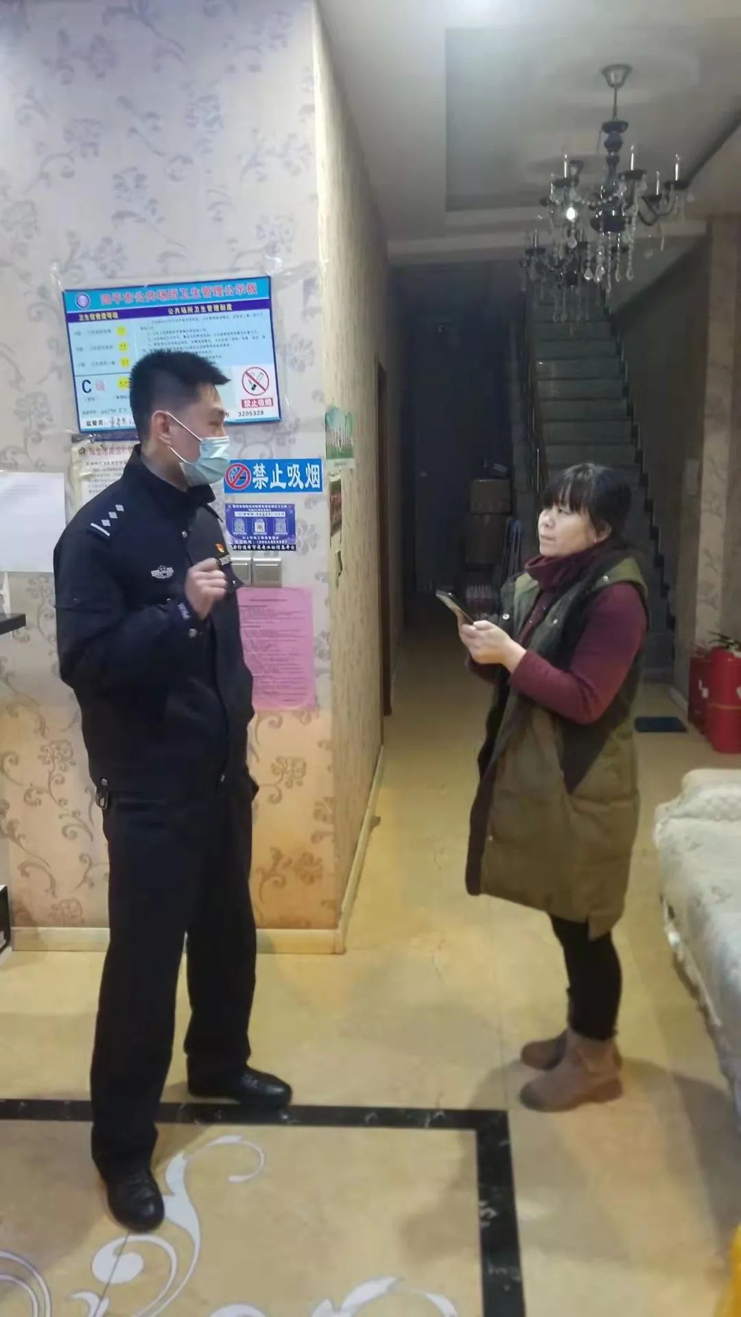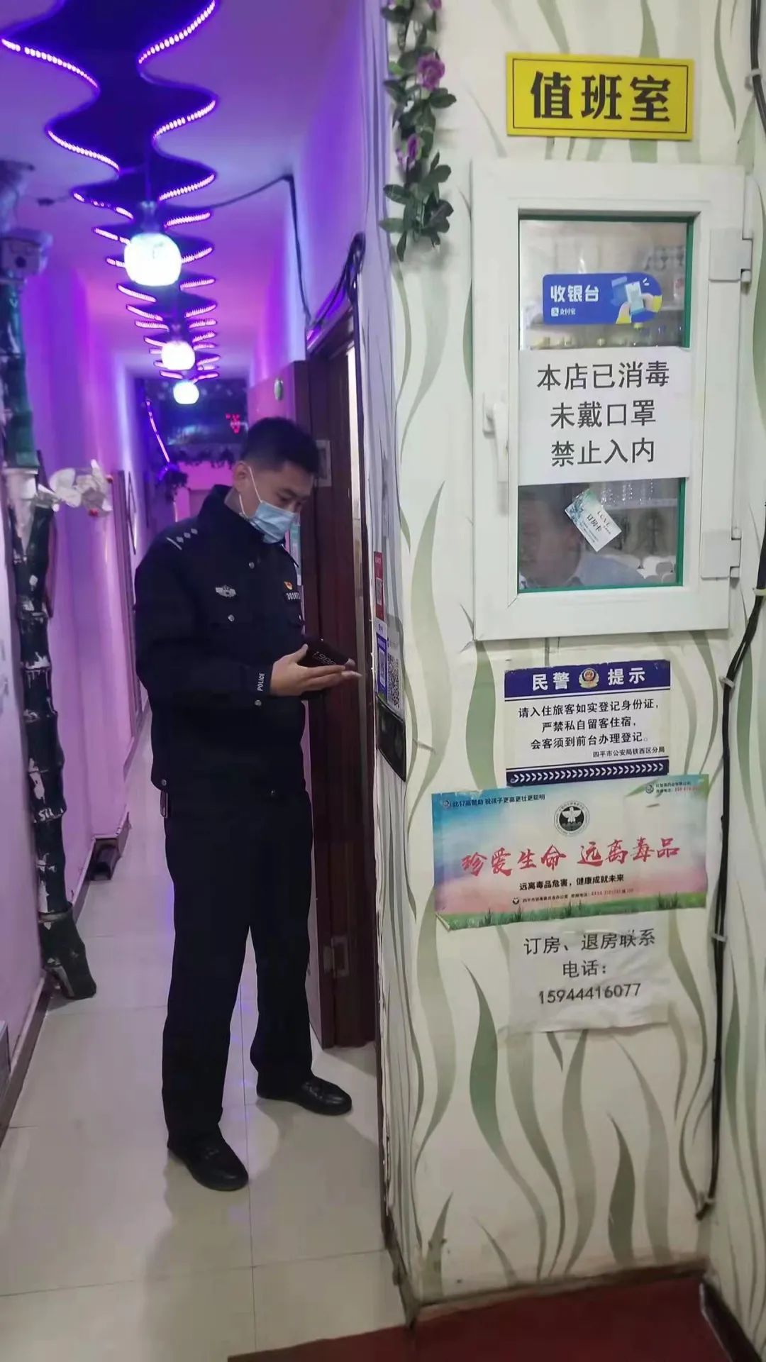 19时11分,带领民警桂铭希等人去辖区内营业的网吧、宾馆等场所进行检查,确保过年期间的安全。