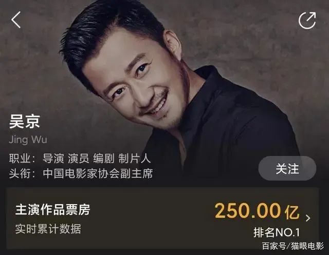 最新数据显示,吴京主演影片累计票房突破250亿,稳坐“中国影视第一位”!