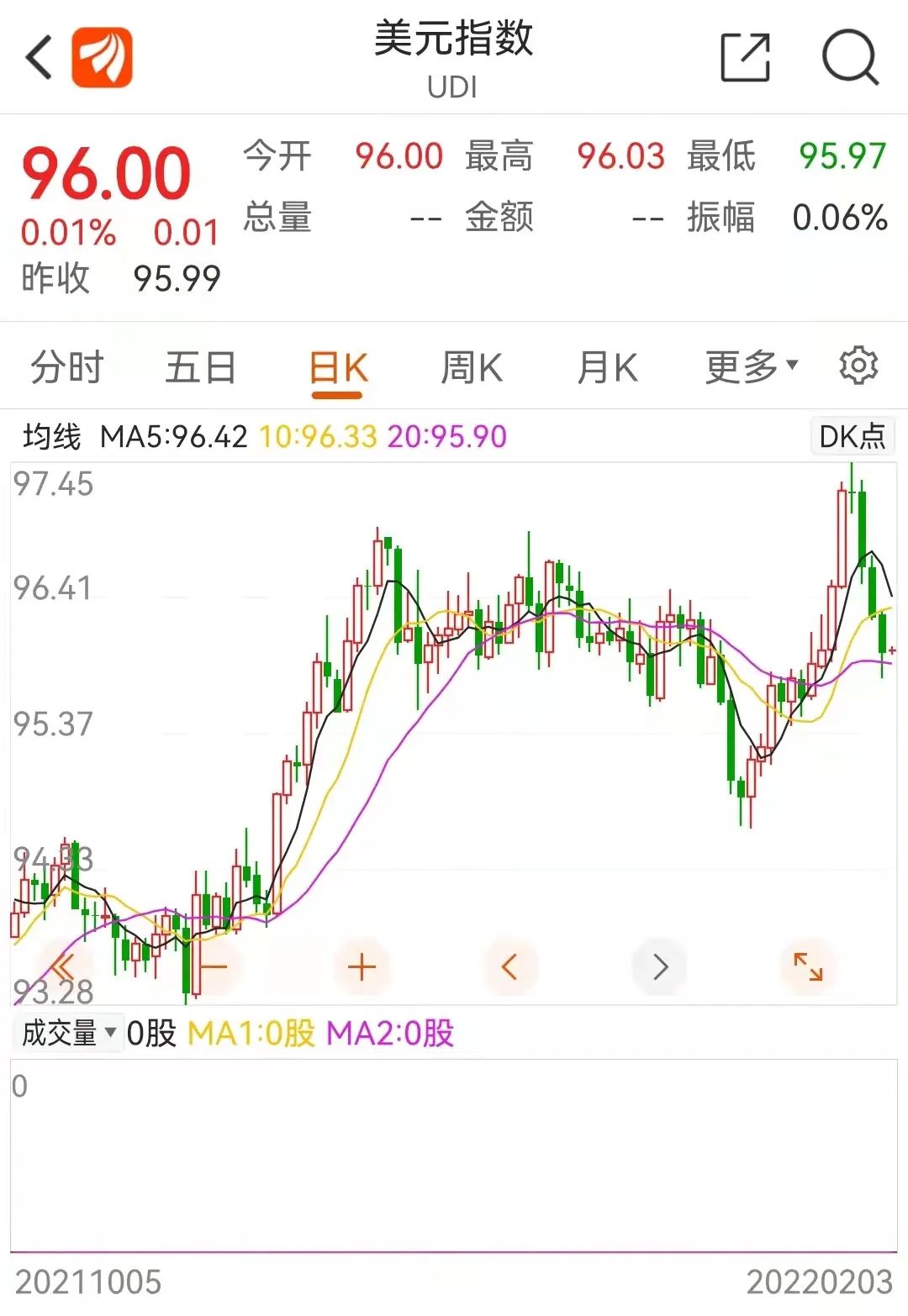 那么,在短短几天之内,市场情绪缘何突然反转?且来看一个指标:美元指数。最近4个交易日,美元指数连续从高位滑落。该指数最高达97.45,现报96。