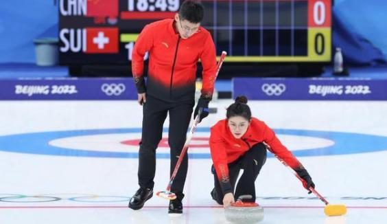 2)首战告捷!北京冬奥会冰壶混双循环赛首轮,中国组合凌智/范苏圆经过加赛,以7-6击败瑞士组合,为中国代表团取得开门红!