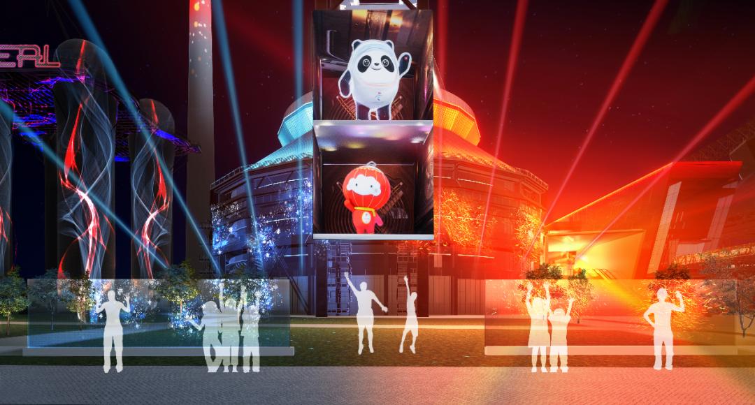 课题针对工业遗址转型的问题和需求,研究基于数字孪生和光影仿真模拟技术的理论与方法,工业精神与体育竞技的文化重构,设计与开发具有冬奥内容的、首钢特色的、高科技含量的沉浸式体验夜间活动空间和随境影像展现系统。示范工程选择凸显首钢工业特色的高炉、烟囱、热力炉等载体进行设计,结合冬奥主题,设计冰火主题,通过体育竞技的方式进行互动。通过光、雾森、声音等结合,以及与人近距离多维度的互动形式,形成多感官强交互的光乐园。