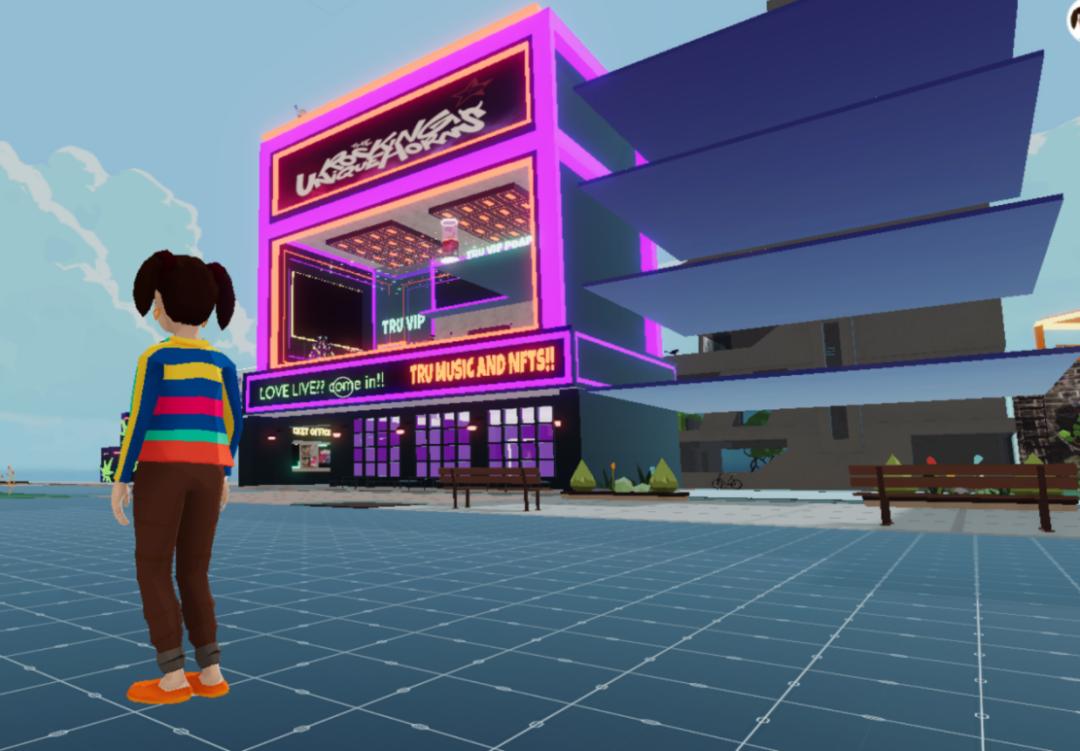 据资深Decentraland玩家所说,这家酒吧在场景建设时便添加了众多流媒体板块的屏幕插件,因此每周酒吧二楼大屏幕上都会有主播在这里驻唱。