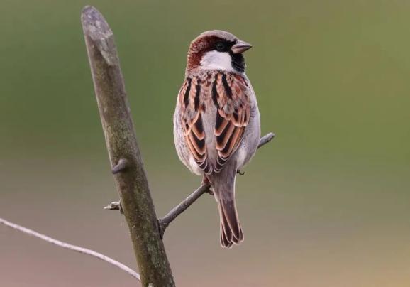 被发现时,它混在成群的麻雀(Passer montanus)中,体型明显偏大,不时在已收割的稻田中和田边小树上来回飞行。该麻雀额部至头顶明显偏灰,颏至喉部黑色,脸颊白色,经鉴定为雄性家麻雀。