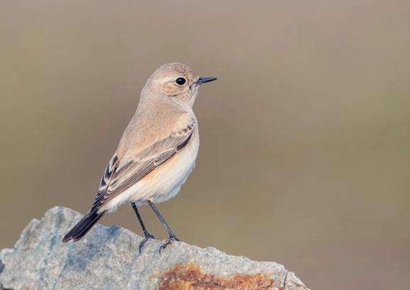 该鸟体型接近常见的东亚石䳭(Saxicola stejnegeri),背部呈沙黄色,腹部色浅、近白色,胁部为浅赭色,翼为黑褐色,尾羽近全黑、边缘无白色。经鉴定为漠䳭雌鸟。漠䳭分布于我国西部及青藏高原,近年有迷鸟记录于北京、四川、上海、台湾等地;浙江的漠䳭也应属于迷鸟,为浙江省鸟类新记录。