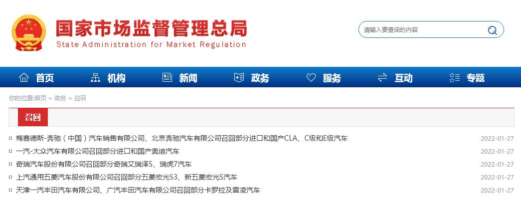日前,一汽-大众汽车有限公司根据《缺陷汽车产品召回管理条例》和《缺陷汽车产品召回管理条例实施办法》的要求,向国家市场监督管理总局备案了召回计划,自2022年2月28日起召回部分进口和国产奥迪汽车。