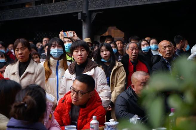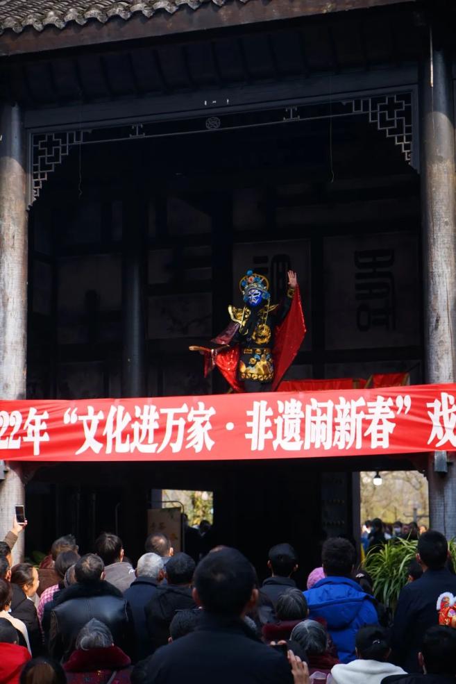 在万寿宫,每天上千人躇足观看新春“文化进万家 非遗闹新春”戏曲演出。生旦净末丑名家联唱,难得一见。川剧变脸最是精彩,只见一名穿着川剧蓝色袍子的“黑面神”,一会儿变出一张花脸,一会儿变出一张白脸,赢得现场观众阵阵掌声,大家纷纷掏出手机,记录这一精彩时刻。