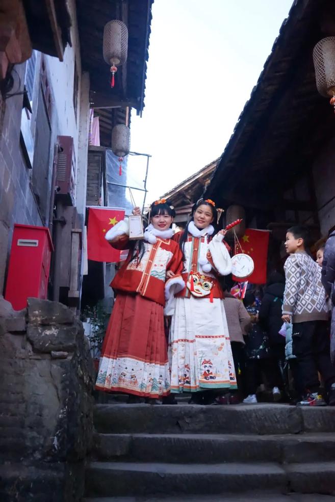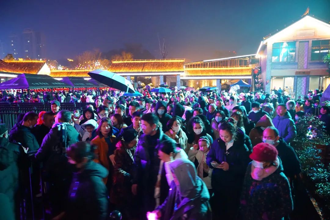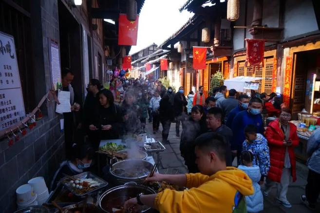 大红的灯笼、热气腾腾的美食、欢声笑语、如织的人流,无一不呈现出恩阳古镇浓浓的新年氛围。夜晚的恩阳古镇张灯结彩,恩阳船说演艺精彩纷呈,热闹非凡。