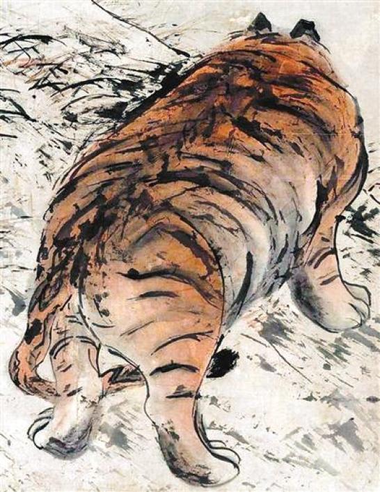 而另一些画家笔下,虎则表现出不同的样貌,由变得温顺可爱甚至可怜起来。