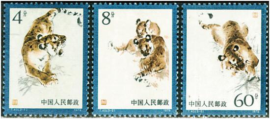 1979年7月20日,为了宣传保护珍贵动物的意义,中华人民共和国邮电部发行一套《东北虎》特种邮票,全套3枚,采用中国擅长画虎的著名画家刘继卣原画。第一幅图案描绘了一只引颈长啸的东北虎形象。第二幅图案描绘了一对东北虎在田野相偎相依的亲密情态。第三幅图案描绘了一只东北虎捕猎食物时的情景。