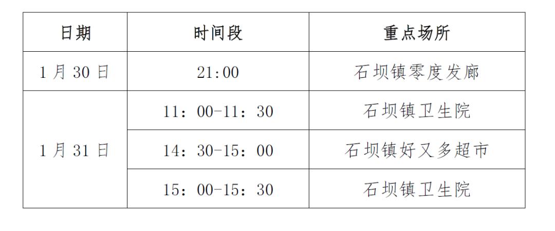 1月28日:10时左右到坪上镇石内风景区游玩,16时左右返回家中,其余时间居家。
