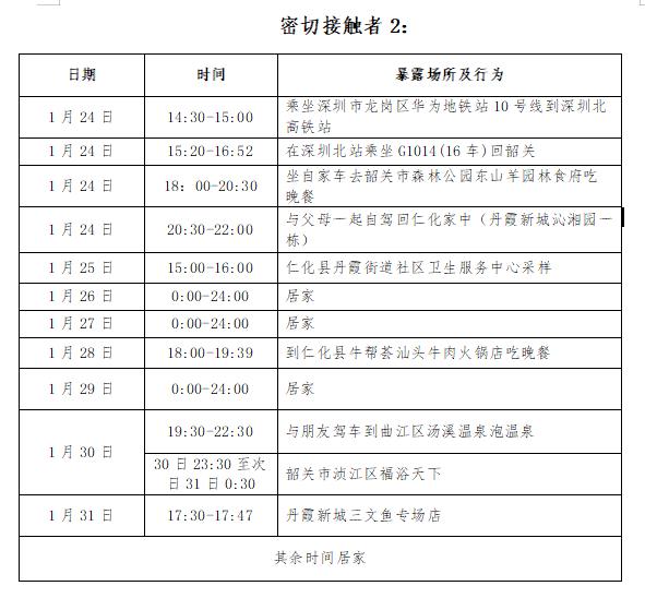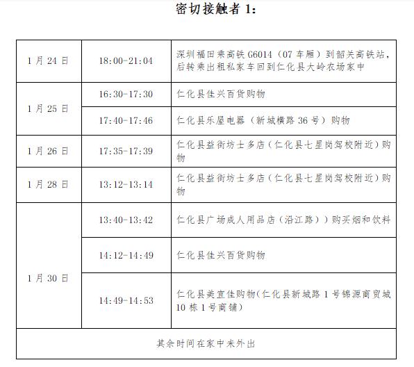 仁化县公布2名密接者主要活动轨迹如下: