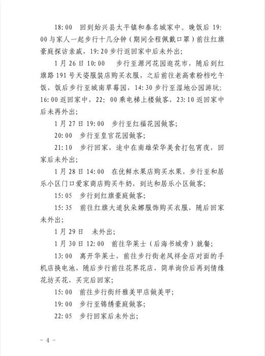 密接4(密接1女儿)活动轨迹: