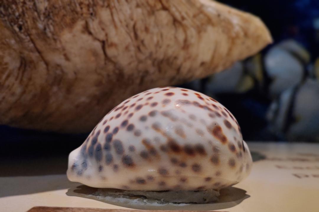 虎斑宝贝表面光滑如瓷器,有珐琅质,具有白色或淡黄色的光泽,有大大小小的黑褐色斑点。准确来说,色彩图案如豹皮,虎和豹也算近亲,因此得名。虎斑宝贝为海洋濒危物种,属国家Ⅱ级保护动物,是宝贝科中体型最大的种类,成体壳长8~13厘米。