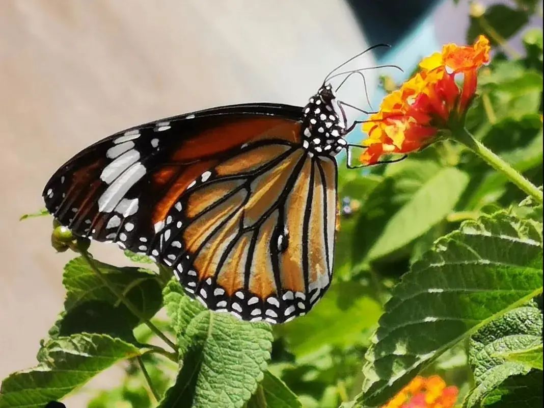 中型蝴蝶,翅膀橙黄色,具有黑色的脉纹,如同虎纹,前翅顶角处具有白色斑点。虎斑蝶飞行优雅,喜欢访花吸蜜,非常漂亮。上海地区每年秋季是观察欣赏虎斑蝶的季节,不过它们的分布不太均匀,郊区的荒地、郊野公园更有机会见到。