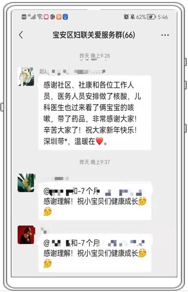 宝安妇联防疫“安心”热线专班建立微信群,通过与街道、社区联动,全面摸底排查管控区内的孕产妇、儿童等需要重点关注的人群,建档立卡,确保精准服务。