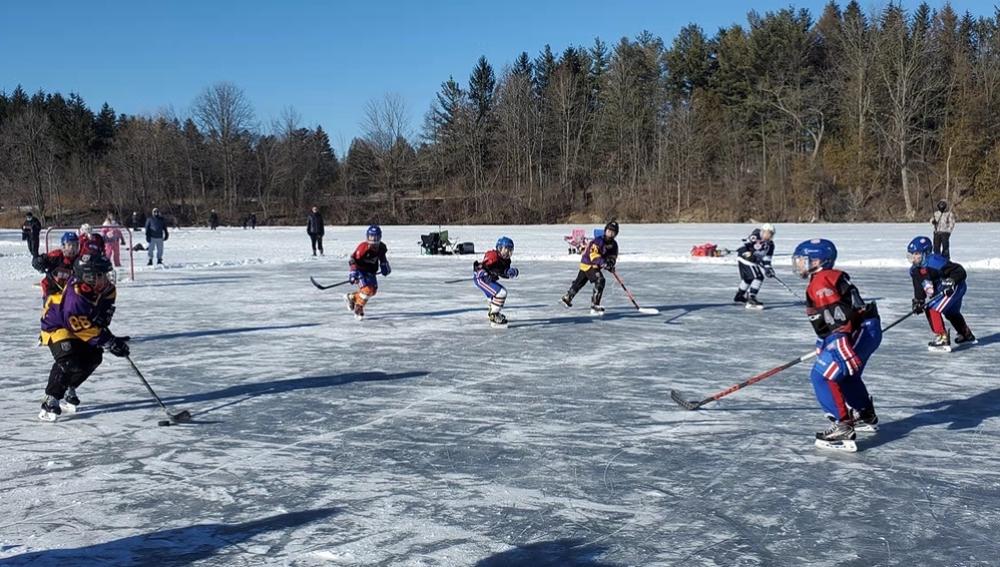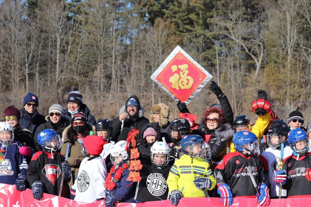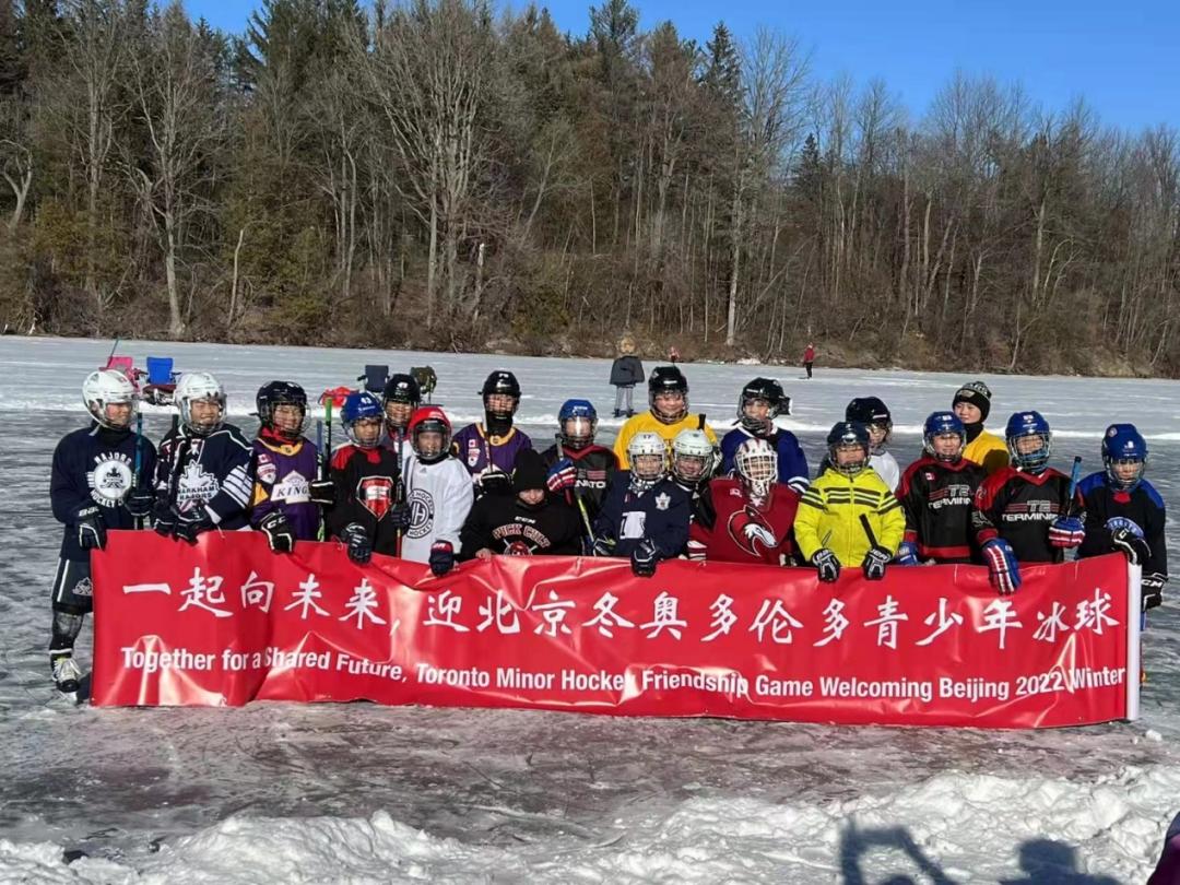 1月16日,多伦多北部举行冰娃闹春迎冬奥湖面冰球交流活动。(中国冰协北美中心提供)